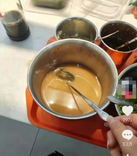近日,有網(wǎng)友稱,在江蘇揚(yáng)州江海職業(yè)技術(shù)學(xué)院食堂的麻醬盆中發(fā)現(xiàn)老鼠。