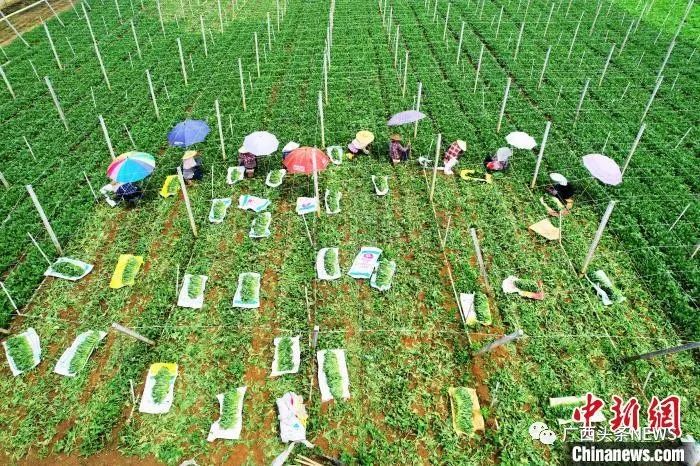 貴港市港北區(qū)武樂鎮(zhèn)逢宜村,工人正在搶收蔬菜。岑記華 攝
