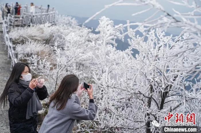 資料圖游客拍攝大明山霧凇景觀。陳冠言 攝