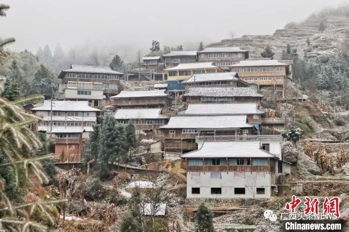 資料圖:寒潮來襲,柳州市融水苗族自治縣度苗寨屋頂被雪覆蓋。梁強 攝