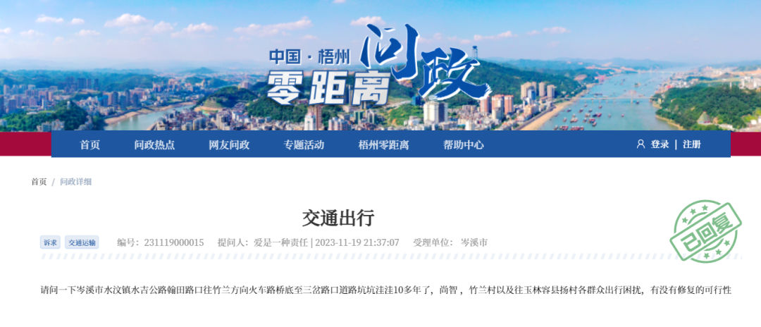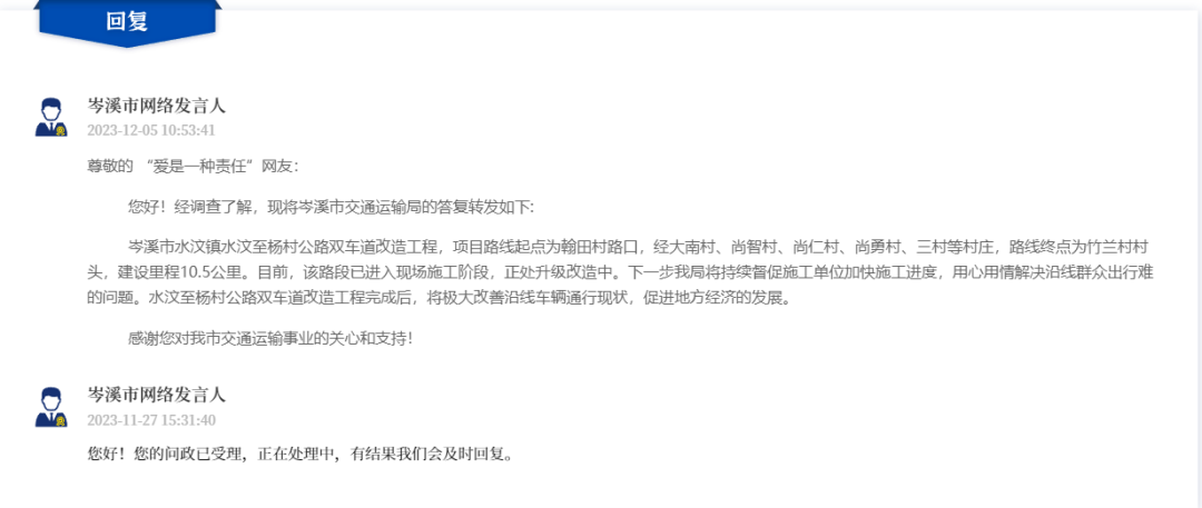您好!經(jīng)調(diào)查了解,現(xiàn)將岑溪市交通運輸局的答復(fù)轉(zhuǎn)發(fā)如下: