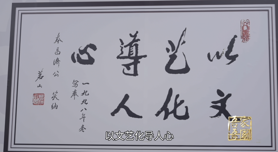 游本昌的辦公區(qū)內(nèi)有一塊匾——“以文藝化導(dǎo)人心”。在他眼中,文藝有三種功能:一是牛奶——營養(yǎng);二是白開水——解渴、生命的基本需求;三是毒藥——絕對不能干毒藥。?
