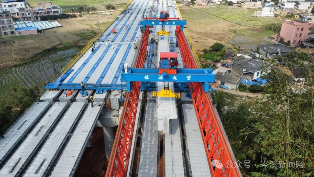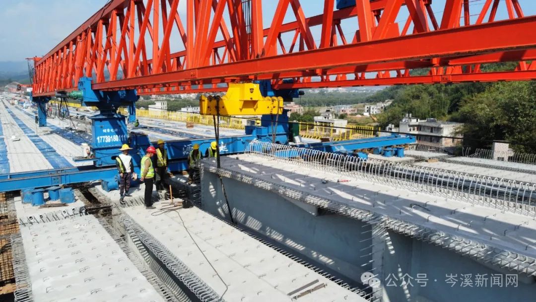 據(jù)了解,平岑高速公路第七標(biāo)段共有七座橋梁,而義昌江特大橋是該標(biāo)段第一座建設(shè)的架梁橋,橋長(zhǎng)1077m,全橋30m預(yù)制T梁共計(jì)340片,也是該標(biāo)段第一座架梁完畢的架梁橋。