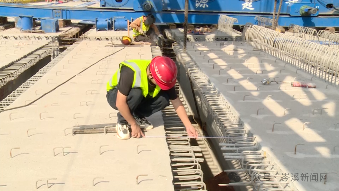 上午11時(shí)許,經(jīng)過(guò)現(xiàn)場(chǎng)工作人員的協(xié)調(diào)配合,一條長(zhǎng)30m重80余噸的預(yù)制T梁穩(wěn)穩(wěn)地落在了蓋梁上,技術(shù)員正在做著最后的安全檢查工作。