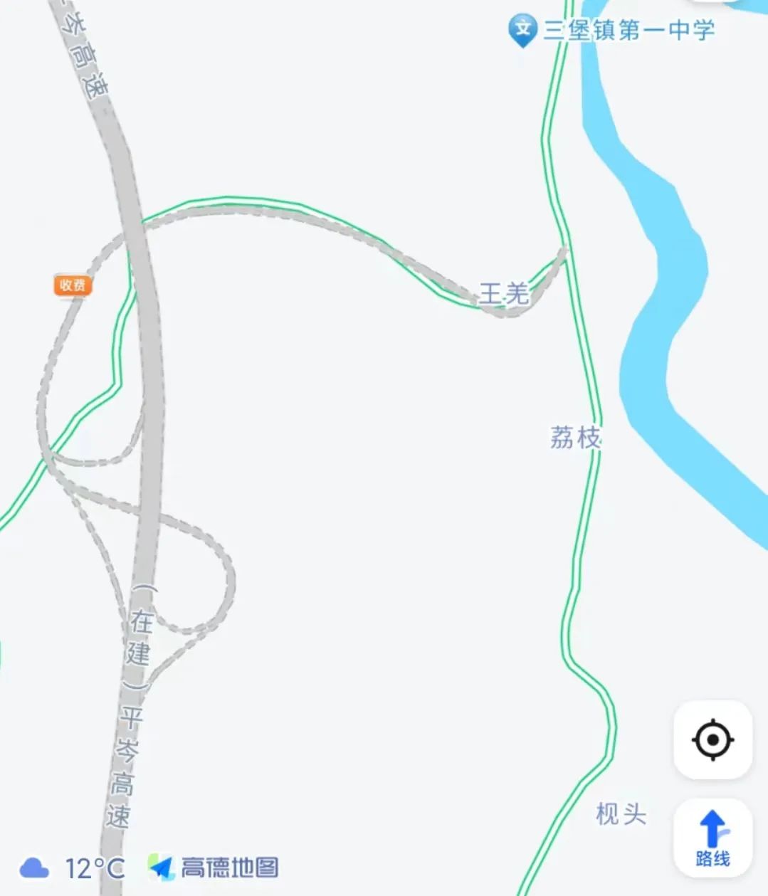 ▲平南至岑溪高速三堡鎮(zhèn)美術(shù)村王羌高速出入口,來(lái)源@高德地圖