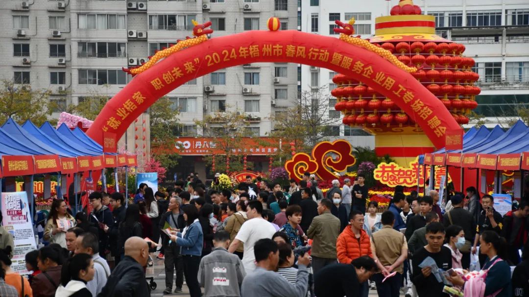 春節(jié)假期剛過,梧州市政廣場(chǎng)呈現(xiàn)出人潮涌涌的熱鬧景象。為緊緊抓住春節(jié)后勞動(dòng)者換崗流動(dòng)高峰期和企業(yè)開工復(fù)產(chǎn)關(guān)鍵期,全力穩(wěn)主體促就業(yè)惠民生,2月18日-19日(正月初九、初十)連續(xù)2天,梧州市人力資源和社會(huì)保障局、廣西實(shí)體經(jīng)濟(jì)服務(wù)員駐梧州市工作隊(duì)、梧州市民政局、梧州市總工會(huì)、共青團(tuán)梧州市委員會(huì)、梧州市婦女聯(lián)合會(huì)、梧州市殘疾人聯(lián)合會(huì)等7部門在梧州市政廣場(chǎng)舉辦“‘就業(yè)梧家 職創(chuàng)未來’2024年梧州市春風(fēng)行動(dòng)暨服務(wù)企業(yè)用工專場(chǎng)招聘會(huì)”,掀起龍年招聘熱潮