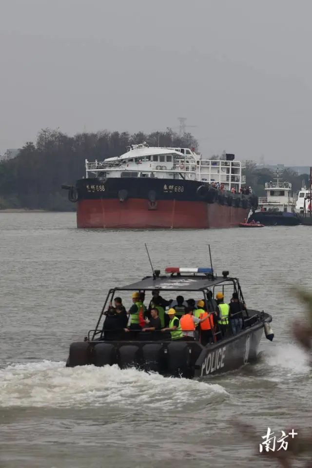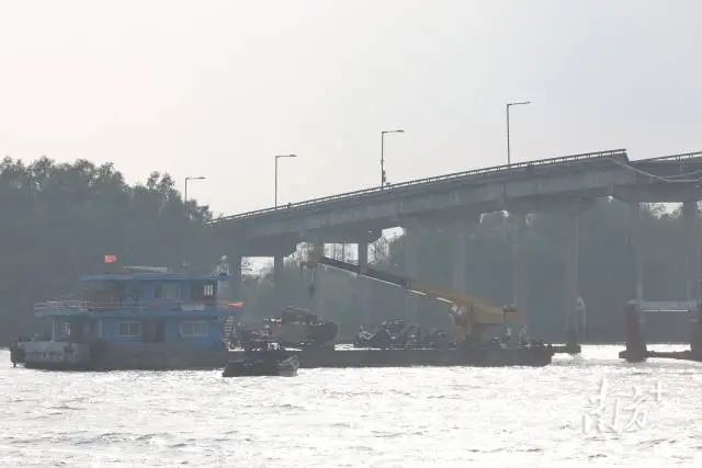 2月22日下午3時(shí)許,記者在現(xiàn)場看到,有一臺黑色小轎車被打撈上來,隨后轉(zhuǎn)移至救援船上?,F(xiàn)場有廣州海事、應(yīng)急救援等10余個(gè)專業(yè)救援隊(duì)伍和相關(guān)職能部門參與救援。此前,有直升機(jī)在瀝心沙大橋上方巡邏。