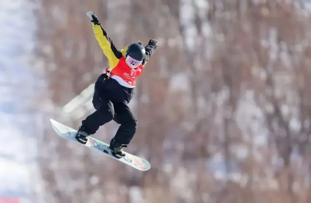▲?2月23日,獲得單板滑雪公開組女子大跳臺冠軍的廣西選手甘佳佳在比賽中。圖源2024第十四屆全國冬季運動會微信公眾號
