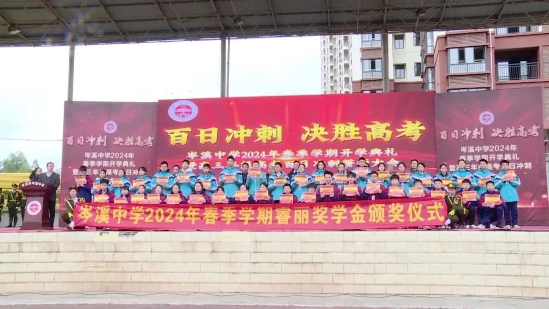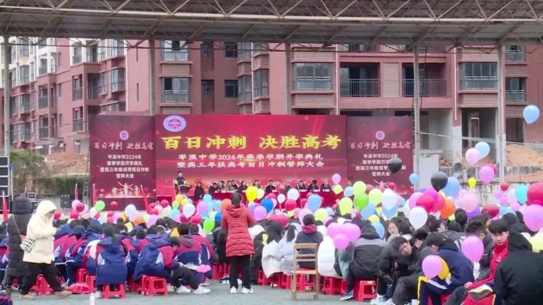 在岑溪中學,2024年春季學期開學典禮暨高三年級高考百日沖刺誓師大會隆重舉行,為優(yōu)秀學生代表頒發(fā)獎學金,教師、家長、學生等代表還分別通過發(fā)言為學子們鼓勁加油,激勵大家在新學年拼搏向上,爭創(chuàng)佳績。一聲聲激情澎湃的宣誓回蕩在校園上空,承載著老師們的殷切囑托和學子們向高考全力沖刺的堅定決心。隨后,高三學生整齊列隊走過紅毯,穿過“成功門”。