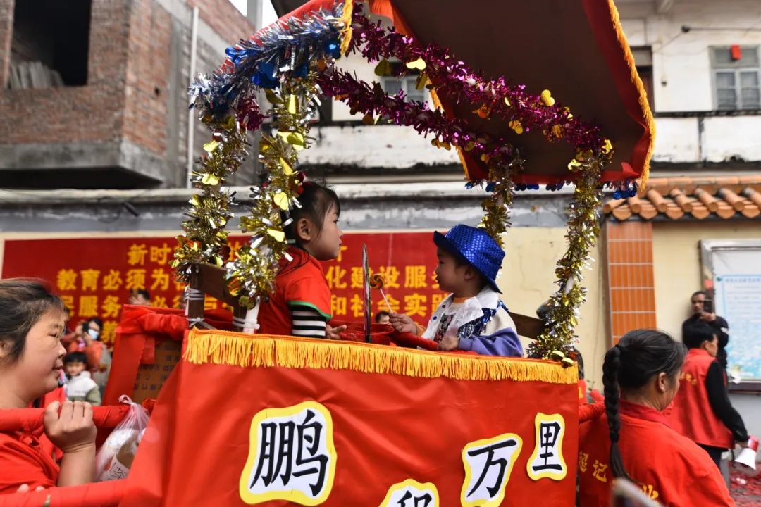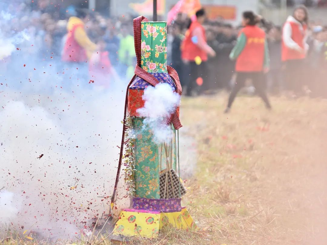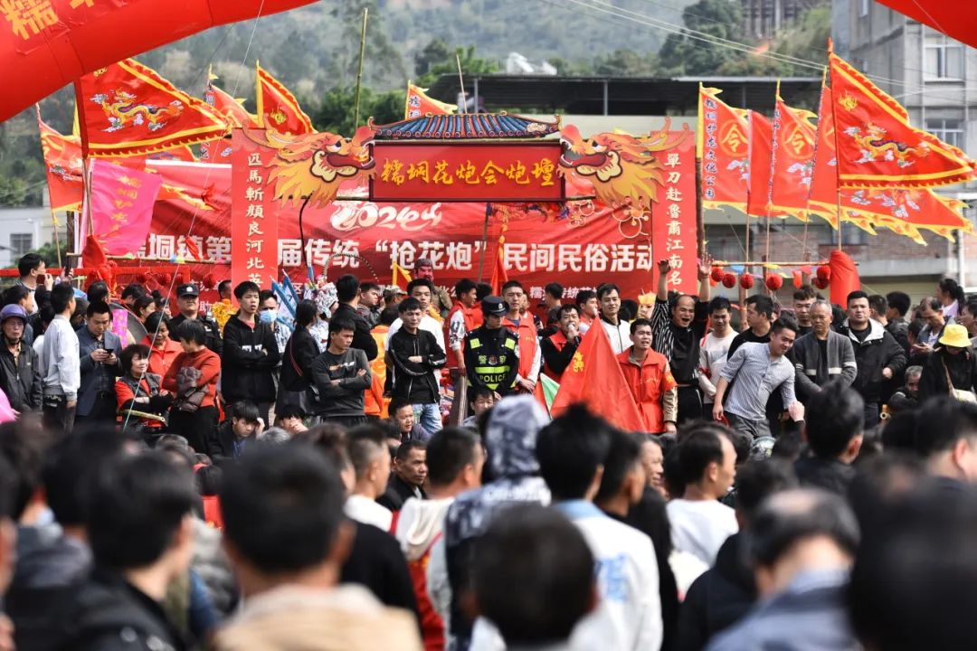 搶花炮開始之前,會先舉行還炮酬恩、特色服裝游行、文藝匯演、鳴鼓、舞獅、過幸福橋、燃放禮花等系列活動,一眼望去,連綿數(shù)公里的活動隊伍蔚為壯觀,現(xiàn)場一片喜慶祥和的新年氛圍。