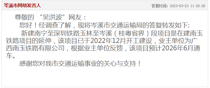 2月27日,據(jù)岑溪市交通運輸局答復(fù):網(wǎng)友提及的岑溪東站,是由設(shè)計單位中鐵第四勘察設(shè)計院集團(tuán)有限公司設(shè)計,目前設(shè)計方案尚未獲得最終批復(fù),有關(guān)岑溪東站的最新進(jìn)展請耐心等待。