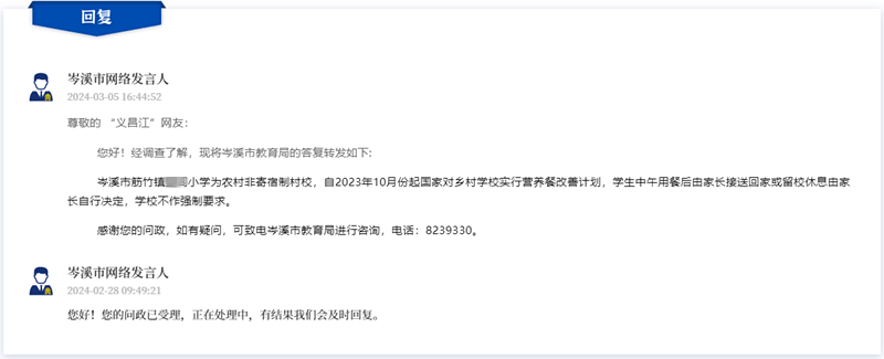 ▲網(wǎng)友問政截圖