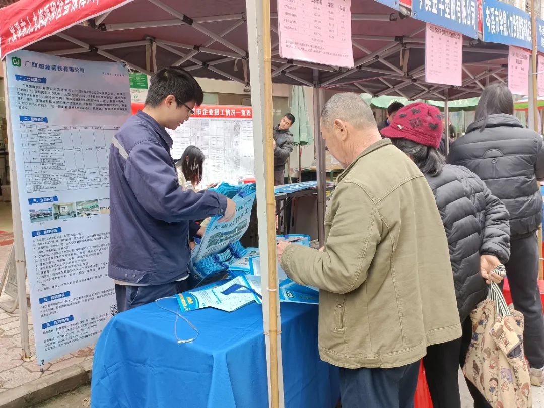 招聘會當(dāng)天正值誠諫鎮(zhèn)圩日,現(xiàn)場人頭攢動,氣氛熱烈。各企業(yè)招聘人員通過宣傳海報、招工簡章、面對面交流等方式向群眾介紹公司概況、崗位信息、薪資待遇等情況,了解他們的求職意向和個人情況,幫助他們實現(xiàn)就近就業(yè)。