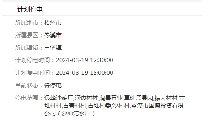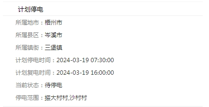 計(jì)劃復(fù)電時(shí)間:2024-03-19 16:00:00