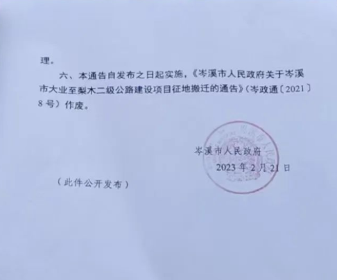 ▲大業(yè)至梨木項(xiàng)目征地拆遷通告,盼如期進(jìn)行