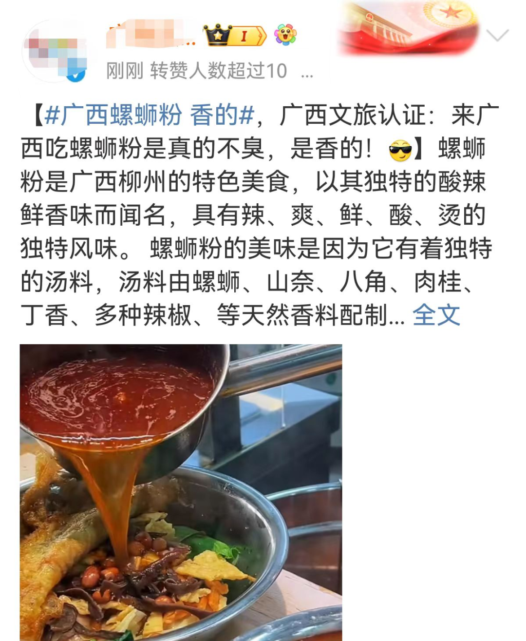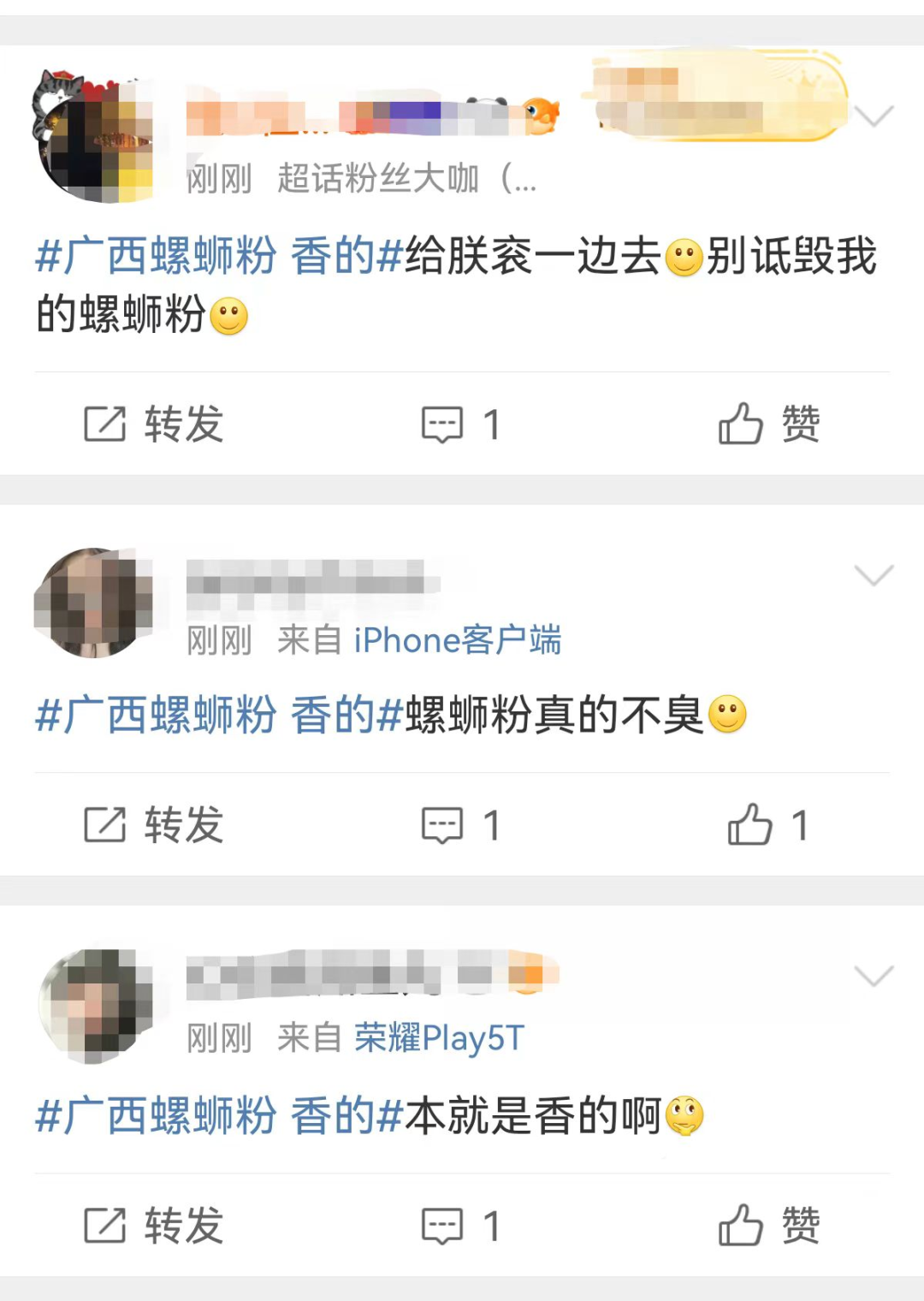 而更多的網(wǎng)友則發(fā)起#廣西螺螄粉 香的#話題,捍衛(wèi)廣西螺螄粉的榮譽。