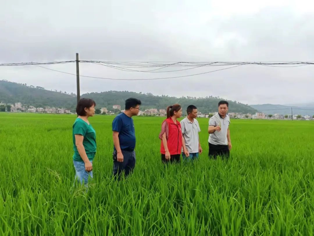 ▲技術(shù)員指導(dǎo)農(nóng)戶做好水稻田間管理