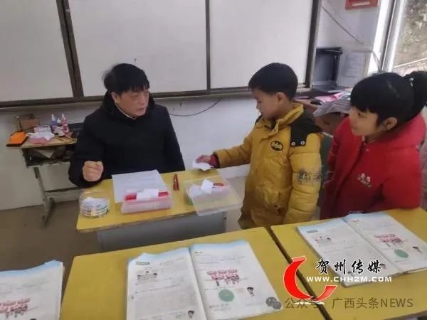 鳳石花和學(xué)生玩抽簽做題游戲。來(lái)源:賀州傳媒