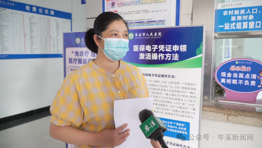群眾 覃女士:“我們是在南寧參保,來這邊工作。因為我愛人生病了,來住院治療。醫(yī)保工作人員也跟我解釋了,南寧報多少,來這里一樣可以報多少,給我們帶來很多的方便?!?/span>
