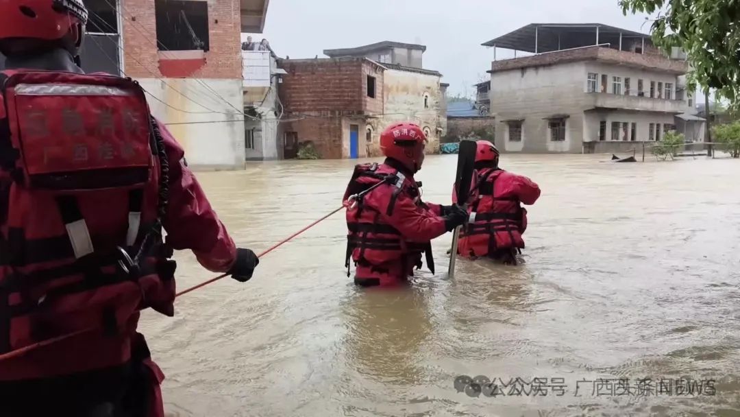 圖為消防救援人員正在桂林市灌陽(yáng)縣救援。 來(lái)源:廣西廣播電視臺(tái)