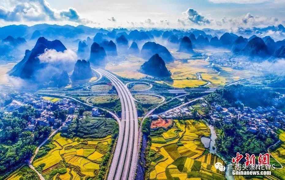 資料圖:穿越廣西山水的高速公路。彭寰 攝