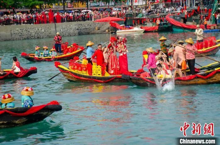 4月12日,在廣西北海市僑港舉行的“疍家婚禮”接親途中的“顛船”習(xí)俗。翟李強 攝