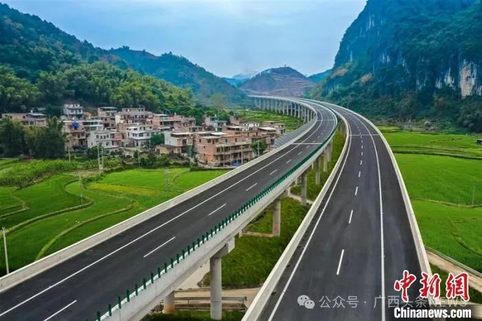 資料圖:圖為高速公路建設(shè)與周圍環(huán)境融為一體。廣西交通投資集團(tuán)供圖