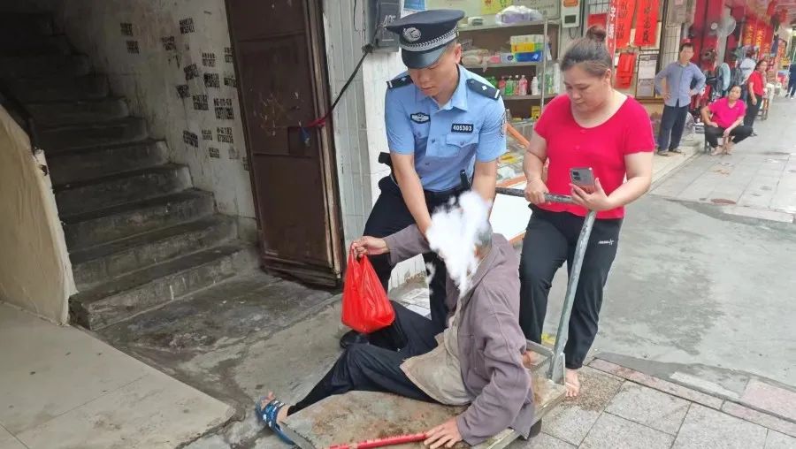 4月26日,廣西岑溪市公安局誠諫派出所接報(bào)稱有男子摔入排水渠,頭部受傷嚴(yán)重,人已經(jīng)昏迷不醒。值班民輔警到達(dá)現(xiàn)場,與群眾合力救出老伯,見其頭部受傷流血,輔警便變身“靠枕”支撐老伯頭部,直到救護(hù)車到來。隨后,民輔警們協(xié)助醫(yī)護(hù)人員將老伯送往醫(yī)院救治。