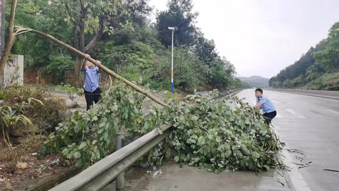 4月20日下午,馬路派出所民輔警巡邏至容岑一級公路轄區(qū)路段時,發(fā)現(xiàn)有樹被強(qiáng)風(fēng)刮倒,橫倒在路面上,阻塞交通。為防次生事故,馬路派出所和曇容中隊(duì)的民輔警立即指揮車輛分流,并合力清理“攔路”倒樹。半小時后,道路恢復(fù)暢通,安全隱患消除。