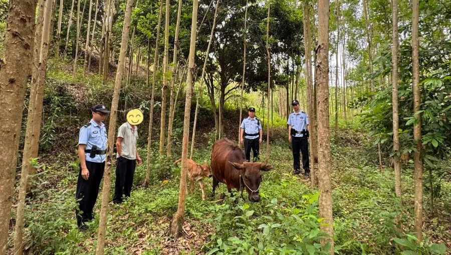 4月19日,糯垌派出所民警接到了群眾的求助電話,前天晚上家里有一頭母牛和小牛沒有回來,疑似丟失了。民警了解情況后通過多方力量進(jìn)行找尋。由于剛下過大暴雨,現(xiàn)場搜尋難度大。功夫不負(fù)有心人,經(jīng)過一個多小時的尋找,民輔警終于在山坡上找到了群眾丟失的兩頭牛。