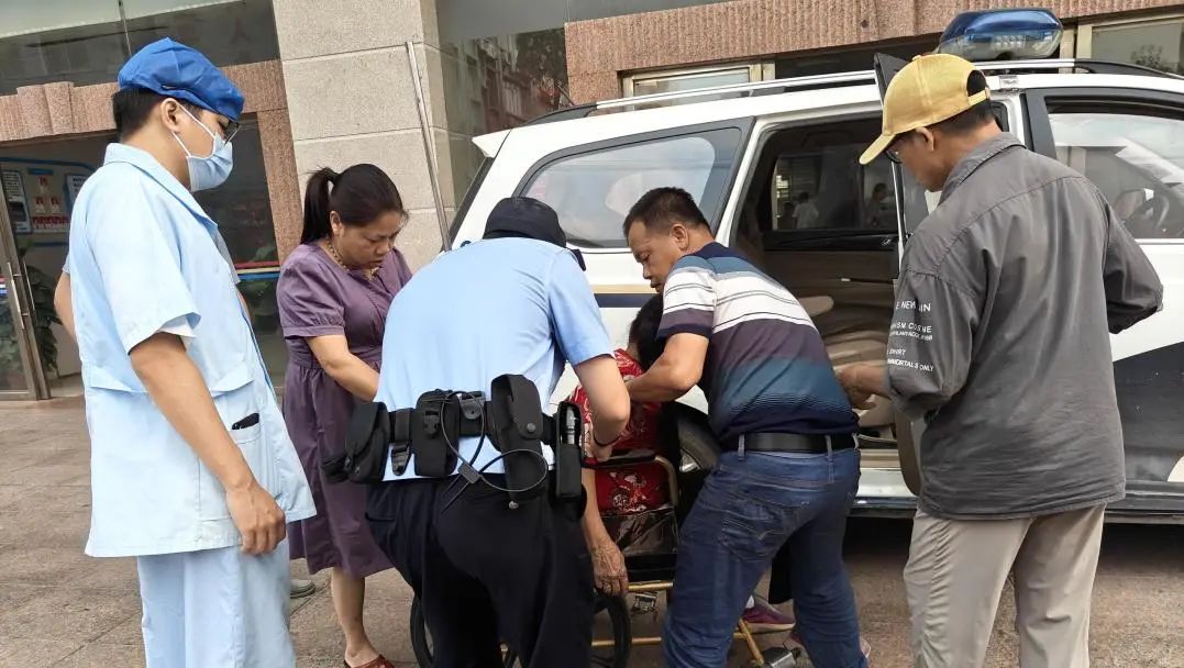 4月17日,岑溪市公安局城中派出所接報(bào)稱樟木大橋附近有老人倒地。值班民警輔警趕到現(xiàn)場,發(fā)現(xiàn)老人意識模糊、手腳無法動彈。因位置偏僻,民警決定先送老人上醫(yī)院救治,隨后民警和輔警一起協(xié)助家屬將老人抬上警車送院治療。