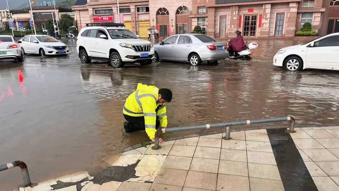 4月20日,岑溪市公安局交通管理大隊(duì)民警輔警在暴雨天氣開展道路巡邏工作,當(dāng)行駛經(jīng)過岑溪市體育館路段時發(fā)現(xiàn)該路段積水嚴(yán)重,車輛無法通行,隨后民警立刻上前徒手對排水口進(jìn)行清堵,并將異物全部從排水口清理干凈,及時消除了道路安全隱患。