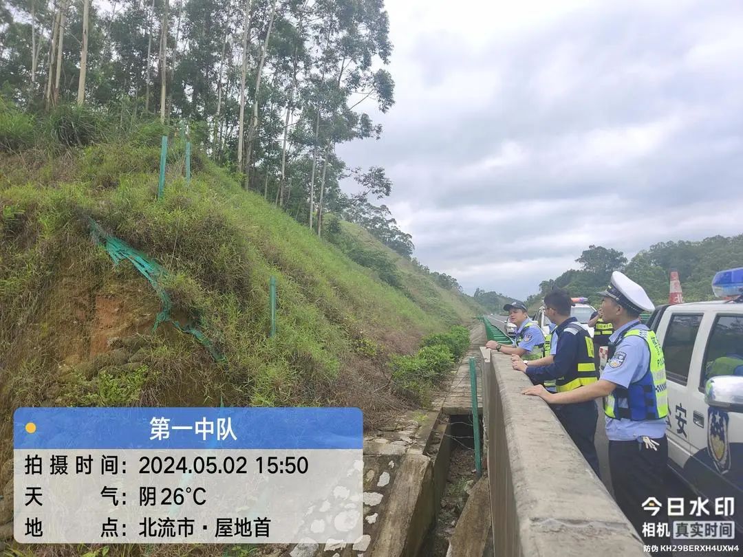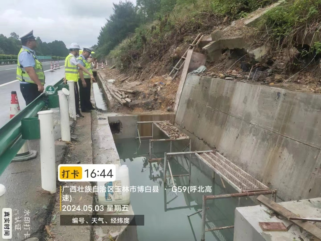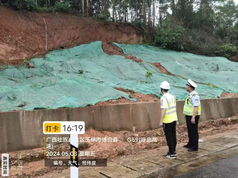 5月2日下午,北流市公安局交通管理大隊聯(lián)合區(qū)交通運輸綜合行政執(zhí)法局第六支隊第三大隊和廣西中交浦清高速公路有限公司在S50清憑高速(北流路段)針對轄區(qū)高速公路落石、地基塌陷、泥石流等隱患進行大排查,經(jīng)排查發(fā)現(xiàn)幾處存在安全隱患,“一路三方”對檢查出的隱患問題及時登記,完善預案措施、加強安全防范。