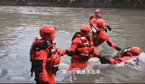 第一個人站在前方,后面的人站在第一個人斜后方30度的位置,后方人員扶著前面人員的腰部,重心向前,穩(wěn)固在水中,等待救援。