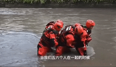 女士站在前面,男士站最后面。后方人員扶著前面人員的腰部,重心向前。此時縱隊面積越小,受到洪水的阻力也越小。