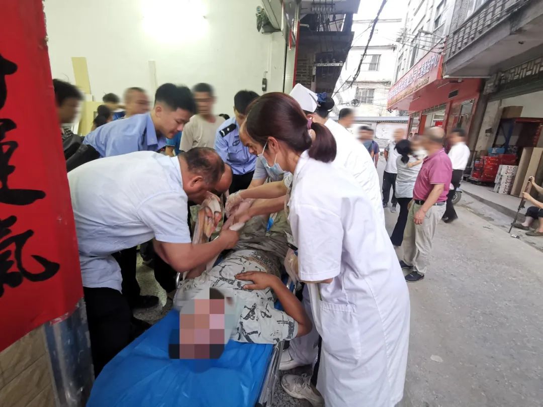 接到警情后,值班民輔警迅速處警趕往事發(fā)地。在途中,民警一邊了解男子的傷勢情況,一邊幫忙撥打120急救電話。趕到現(xiàn)場后,民警看到受傷男子被鄰居救下來后正癱坐在地上,經(jīng)了解,該名男子在修自家的卷閘門時因操作不當發(fā)生意外,左手的手臂被卷了進去,傷勢嚴重。