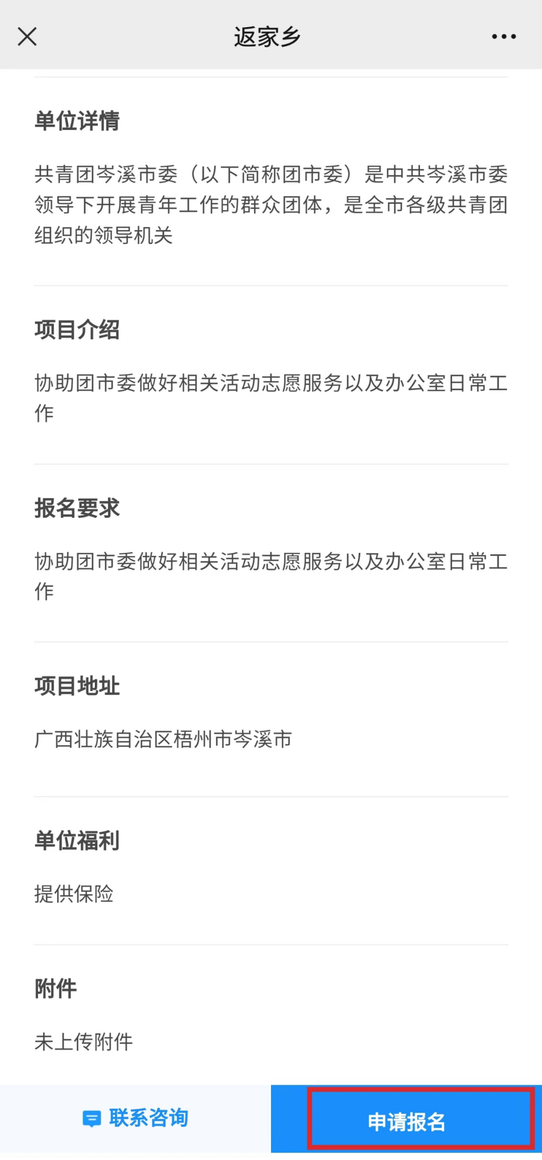 第三步:選擇具體項(xiàng)目查看詳細(xì)信息,并選擇意向崗位進(jìn)行報(bào)名。
