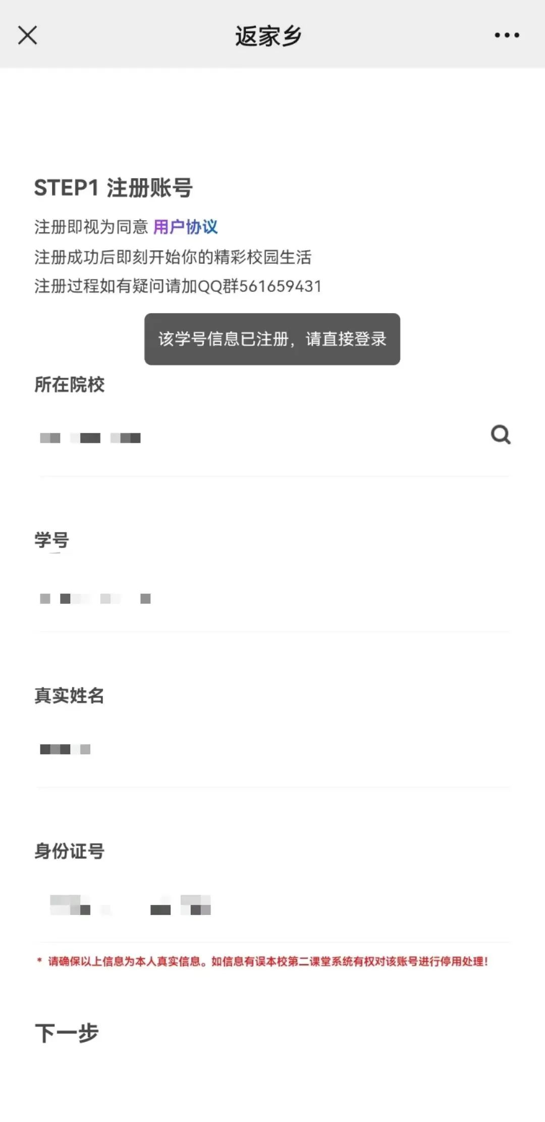 注:如果所在學(xué)校已經(jīng)把個(gè)人信息導(dǎo)入第二課堂系統(tǒng),請直接使用本校第二課堂的賬號(hào)密碼登錄(具體請向本校輔導(dǎo)員咨詢)。