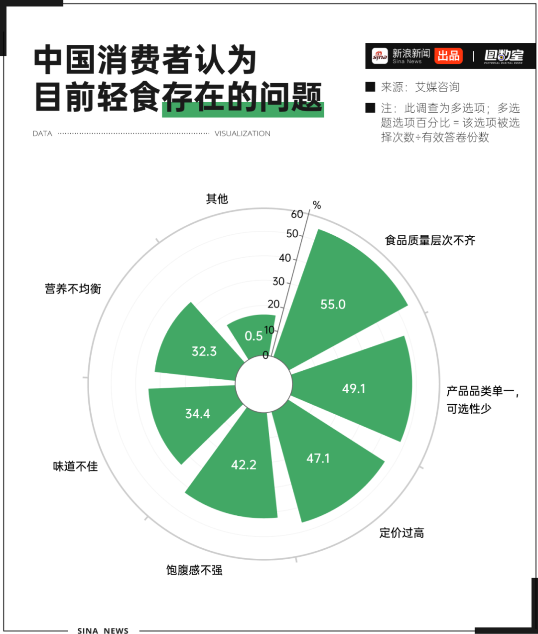 一項(xiàng)關(guān)于輕食存在哪些問題的調(diào)查顯示,食品質(zhì)量參差不齊位居榜首。