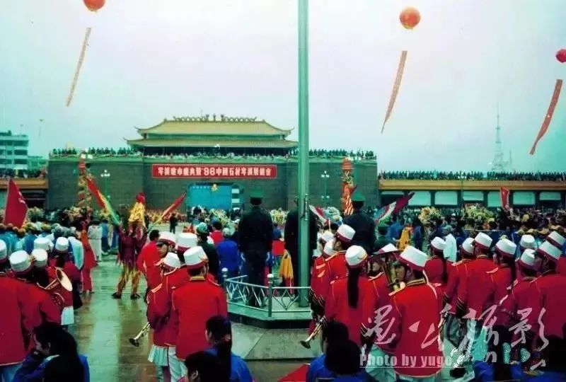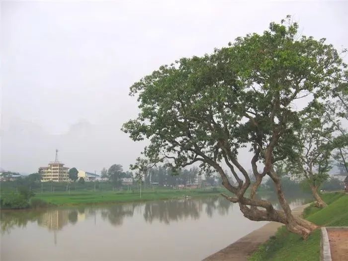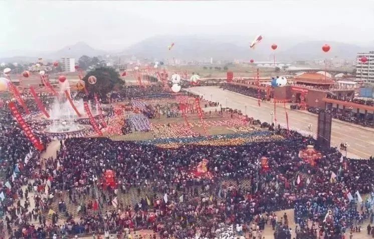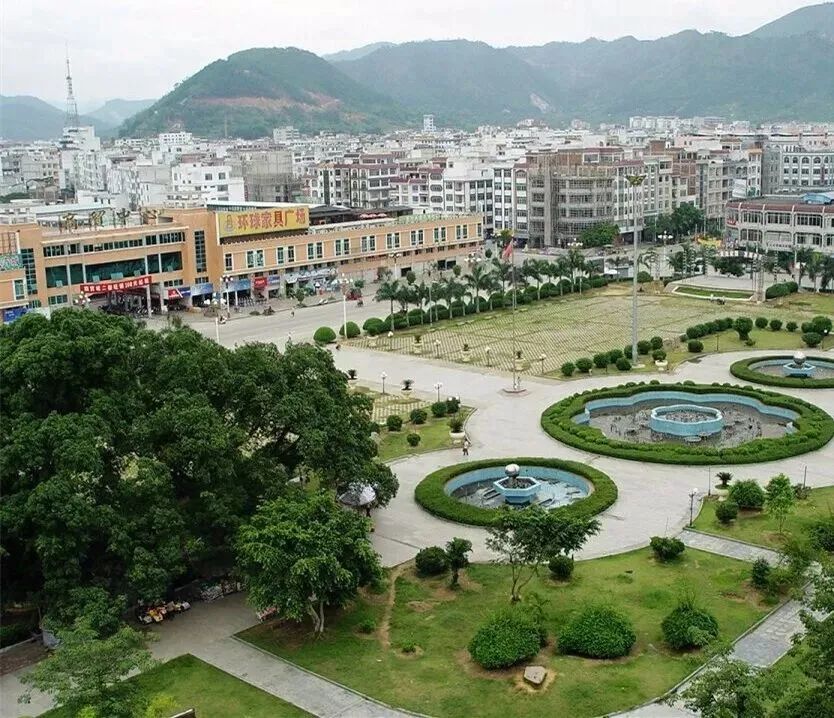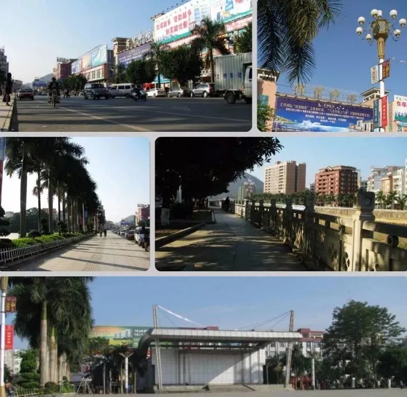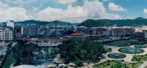 城樓、噴泉、榕樹、岑溪紅、撤縣設(shè)市