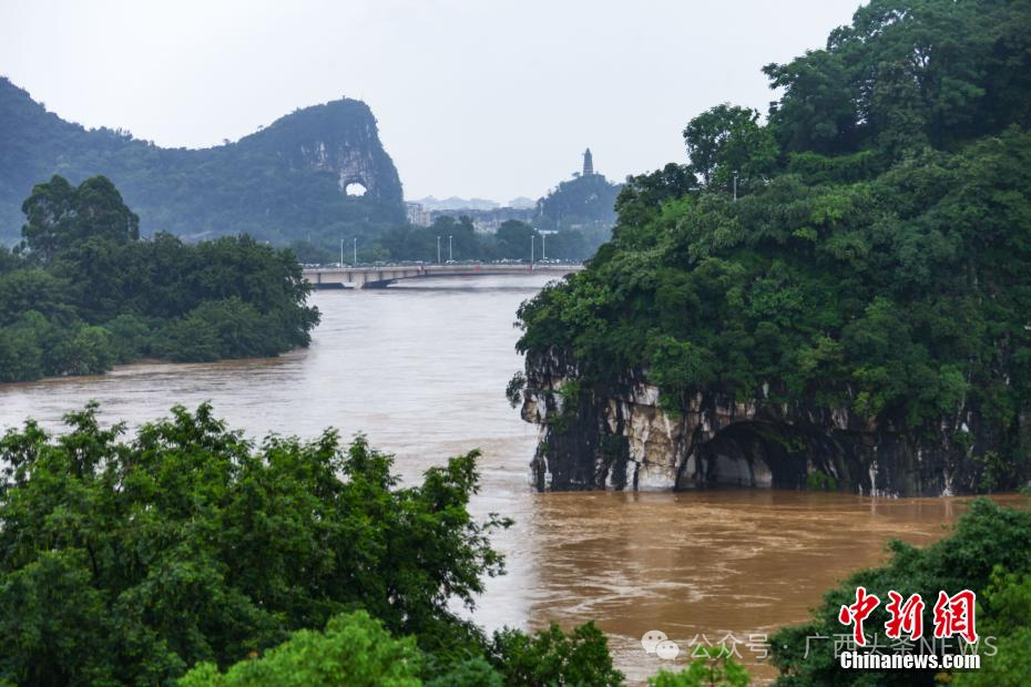 6月18日,桂林城徽象鼻山泡在洪水中,“象鼻子”被淹了大半。周利朔 攝