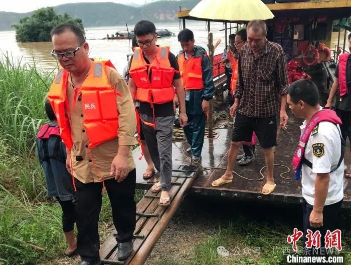 6月18日,海事執(zhí)法人員在來(lái)賓市象州運(yùn)江古鎮(zhèn)轉(zhuǎn)移圍困民眾。蔣辛兵 攝