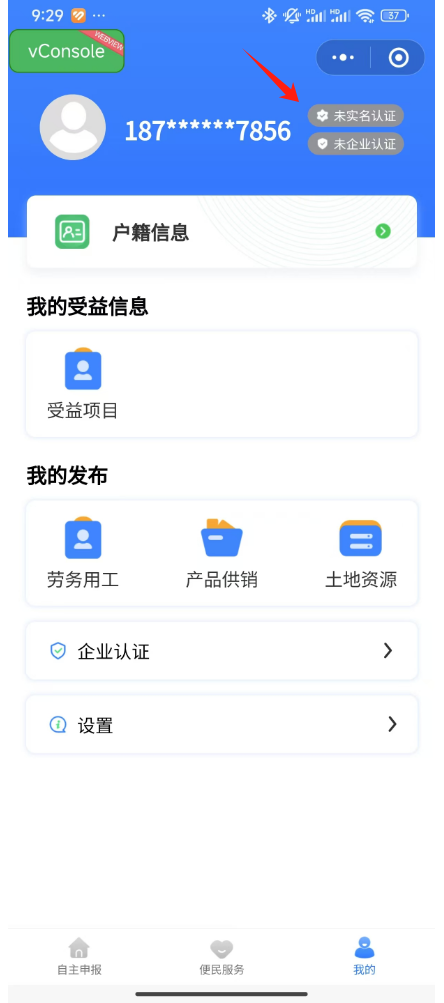 完成登錄后續(xù)進(jìn)行實(shí)名認(rèn)證,點(diǎn)擊個(gè)人主頁右上角的實(shí)名認(rèn)證,可進(jìn)入實(shí)名認(rèn)證界面。輸入姓名、身份證后可自動(dòng)獲取戶籍信息。