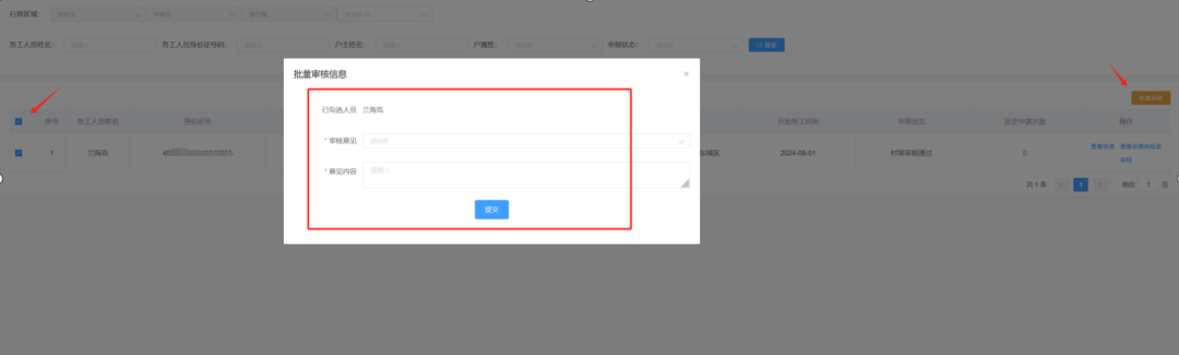 鄉(xiāng)鎮(zhèn)、縣級(jí)可以在列表進(jìn)行批量審核,在列表勾選后點(diǎn)擊【批量審核】