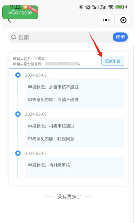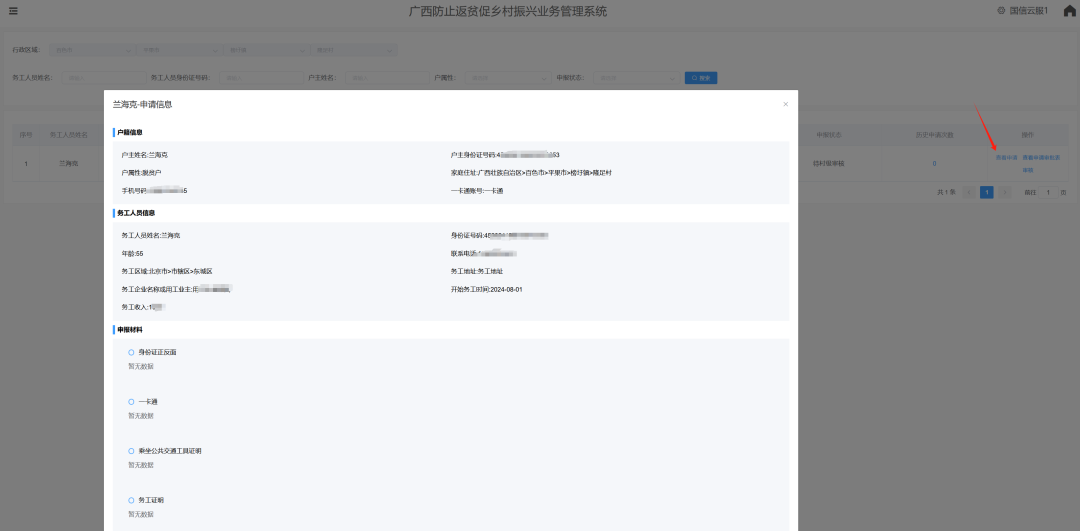 點(diǎn)擊列表中的任意一個(gè)農(nóng)戶信息,可查看該戶的全部申請(qǐng)信息。