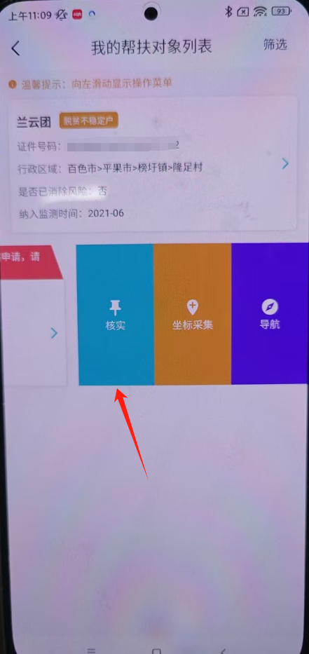 幫扶人核查信息無誤后可左滑進(jìn)行簽名核實(shí)。