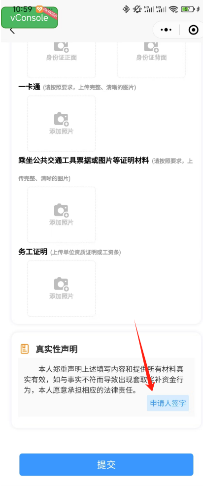 (3)完善全部信息后在底部點(diǎn)擊“申請(qǐng)人簽字”,完成簽字后進(jìn)行提交。