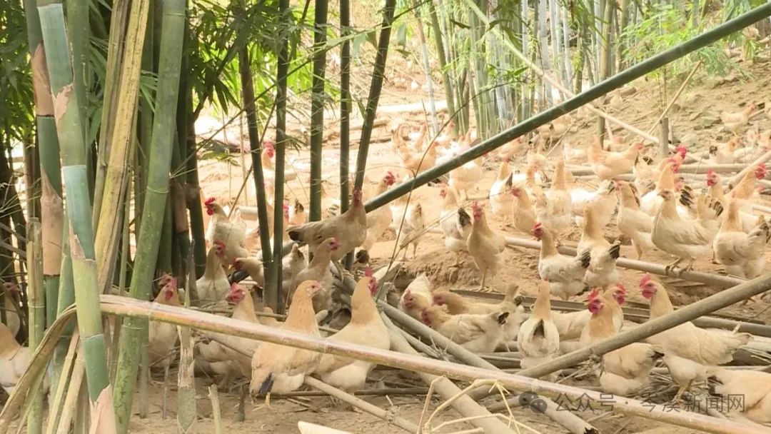 在位于馬路鎮(zhèn)中林村的岑溪市一品農(nóng)業(yè)科技有限公司豐溢肉雞養(yǎng)殖基地,成群的三黃雞在山坡、竹林四處覓食。該養(yǎng)殖基地占地面積約30畝,散養(yǎng)范圍達(dá)700畝,公司采取“公司+基地+農(nóng)戶”的發(fā)展模式,通過(guò)技術(shù)賦能與示范引領(lǐng),帶動(dòng)25戶農(nóng)戶加入養(yǎng)殖行列,實(shí)現(xiàn)了經(jīng)濟(jì)效益與社會(huì)效益的雙豐收。