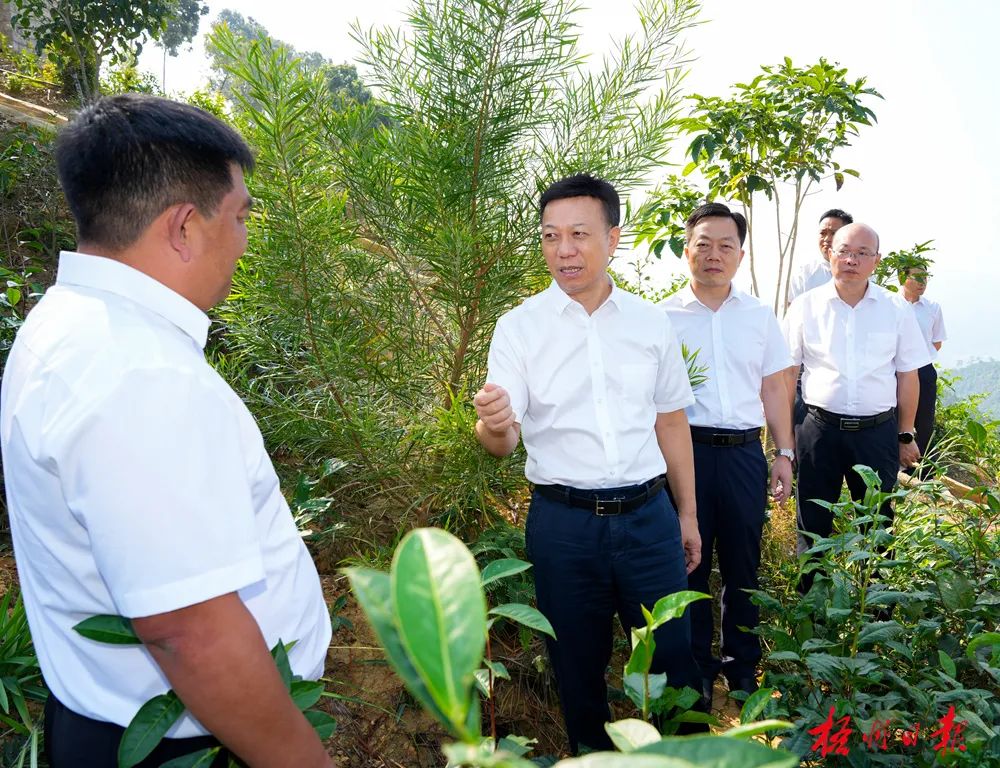 10月12日,市委書(shū)記蔣連生到岑溪市梨木鎮(zhèn)三益村慧豐生態(tài)茶園調(diào)研。何鎏 攝