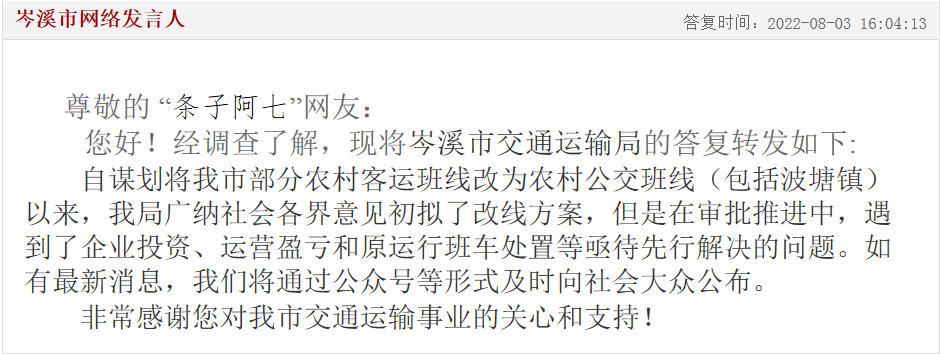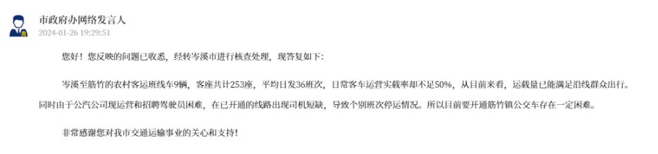 ▲岑溪市筋竹鎮(zhèn)無(wú)法通公交車的答復(fù)